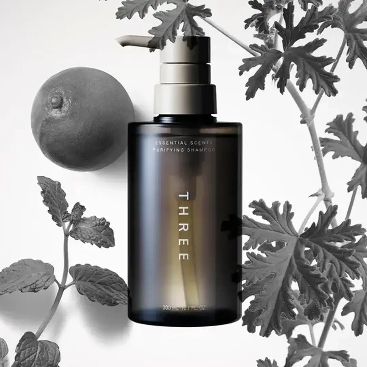 第3位:THREE|(右)エッセンシャルセンツ ピュリファイング シャンプー/(左)同 ボリューマイザー トリートメント