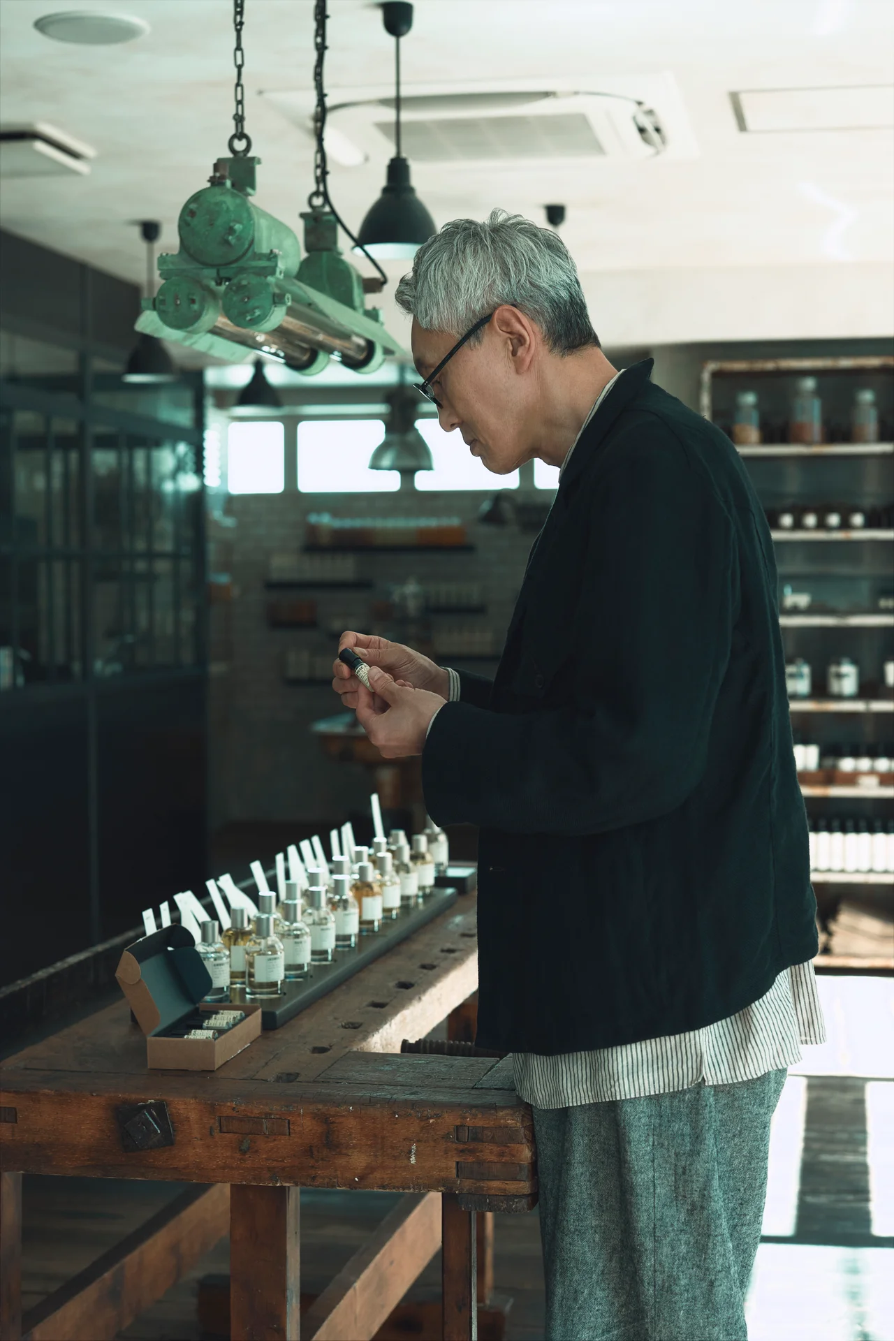 松重さんは選んだ香りのラベルに、英語で「mattige(マッチゲ)」と刻んだ。彼の愛称を冠した、まるで自分のテーマソングのタイトルのような一本が生まれた。丁寧に調合され、ラベルが貼られていく様子を見守る松重さんの表情は、どこか穏やかだった。