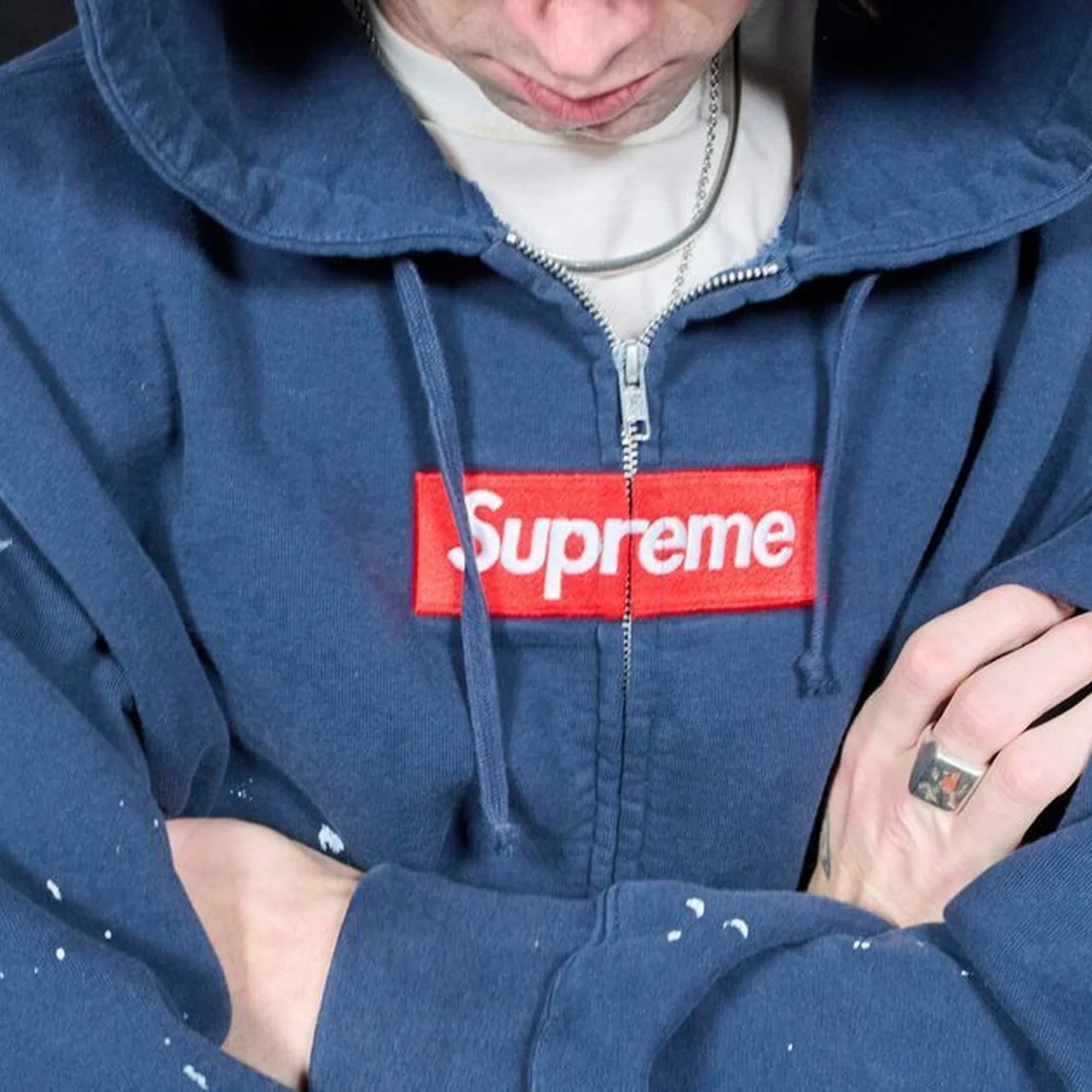 「話題のコラボ。シュプリームを象徴する“Boxロゴ”がフロントジップで割れるという面白いフーディーを購入しました。スタイリングは少しモードを意識して、インナーはシャツ、パンツはウール素材のスラックス、足元はマルジェラのTabiで!」