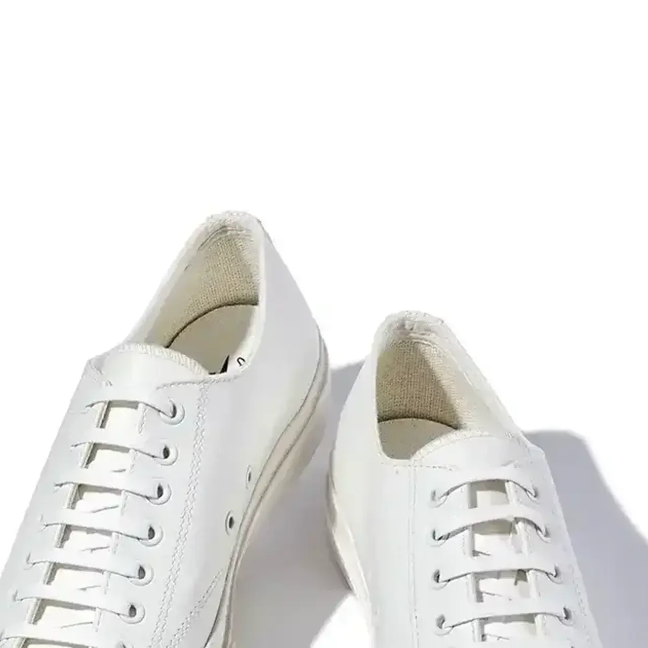 最初に惹かれたのは、やっぱり白のトーンです。ぱっと見は白なんだけど、真っ白ではない。ソールはほんのりクリームがかっていて、スウェードの毛足も含めて全体がやわらかいニュアンスなんですよね」
