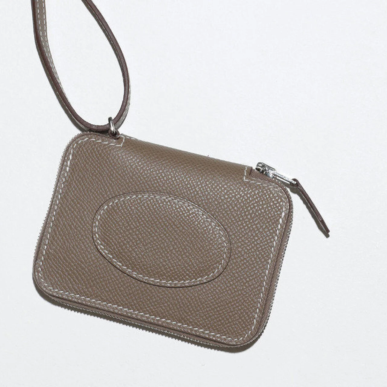 このカードケースは、1990 年代のチケットホルダーに着想を得たアイテム。エルメスが大切にしている、乗馬のコードを再解釈してデザインされた。シンプルながら、手作業による職人の技が光る逸品。縦9.5×横7cm カードポケット2箇所。