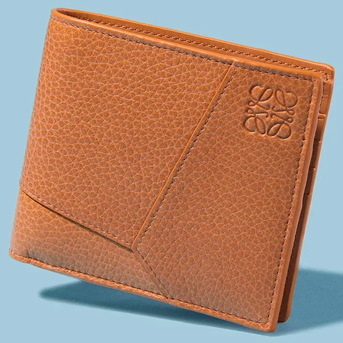 前出と同じくジョセフ・アンド・アニ・アルバース財団とのコラボコレクションの二つ折り財布。入れ子式に重なった正方形を描いた作品の一部を切り取ったような、歪みのある比率や量感にロエベのセンスが光る。