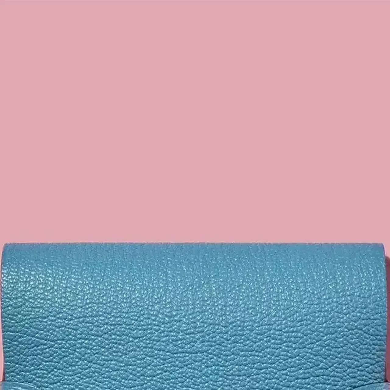 シボ感のあるライトキャニオンブラウンのサプルグレインカーフも2025秋冬プレコレクションでおすすめしたいレザー。定番の二つ折り財布ほか、さまざまな革小物が展開される。パズルのパッチワークとの相乗効果で、どこか70’sなムードを携えた素朴な表情が魅力だ。