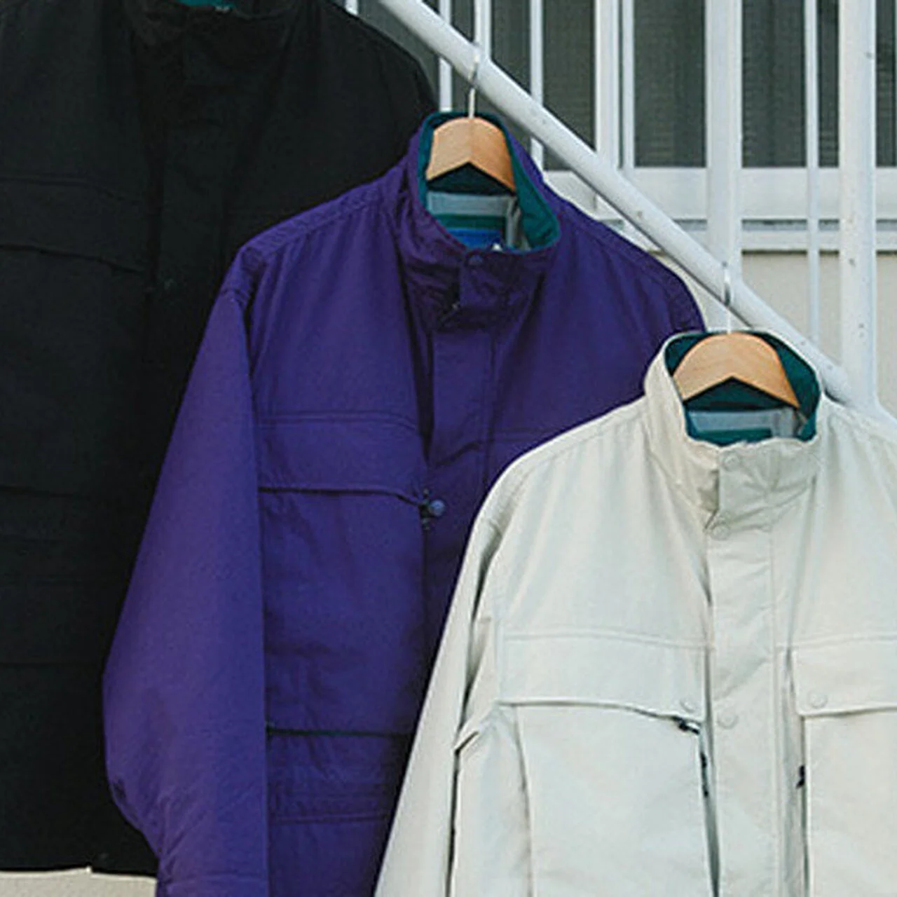 一見するといつものダック地の「デトロイトジャケット」とそんなに変わりはありません。ただ内側にパファーをぶつけてきた!!! さらにサイドのスナップボタンの仕様変更やオリジナルのゴールドボタンなど、ディテールのアレンジ具合がいい。カロリー高めの「ハイブリッド」ではなく、ワークジャケットをほんのりモードに変える。サカイの魔改造、やはり恐るべし。