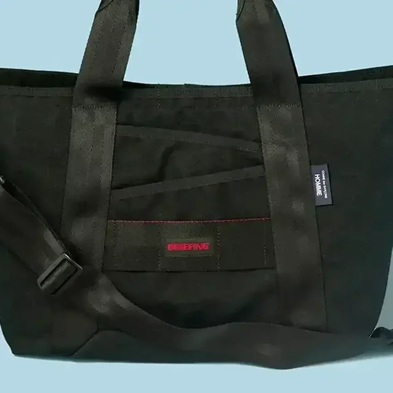 フロントにジップポケット、背面にはマグネットクロージャー付きのポケットを備え、メインコンパートメントには13インチノートパソコンが収納できる。ブラックにバックルやDカンなどメタルパーツのアクセントをきかせつつ、ウェビングストラップにはLOEWEロゴをあしらいラグジュアリーな佇まいに仕上げた。縦27×横38×マチ9.5cm。