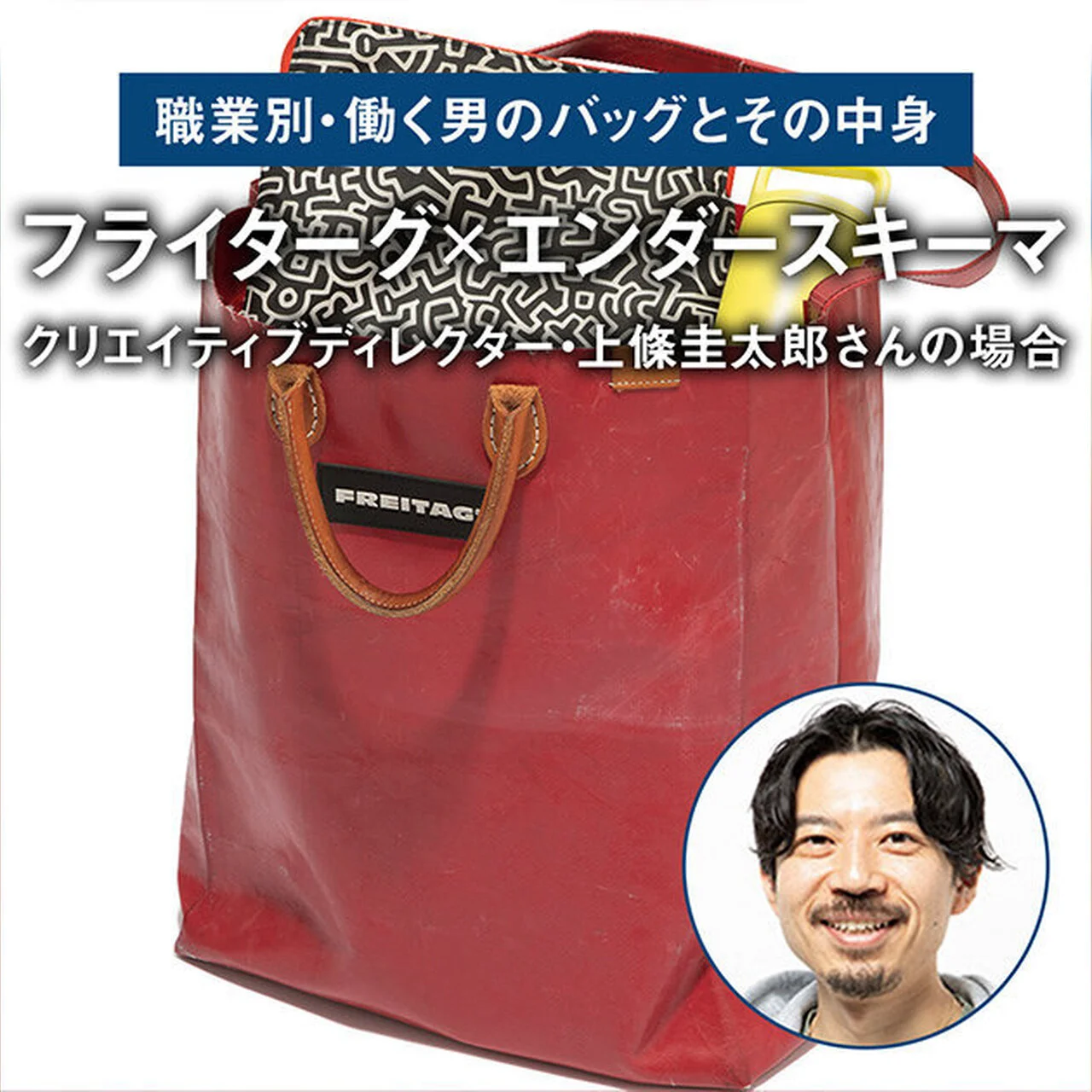 コラボプロジェクト第2弾の商品は、「フライターグ」のアイコニックな主要素材である運送用トラックの幌を再利用したタープ(TARP)と「エンダースキーマ」の制作過程で生じたオフカットレザーを組み合わせた2型のトートバッグだ。