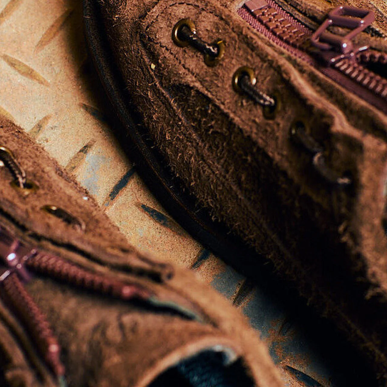 ダナーの名作「Danner Light」をベースに、「Explorer」をオマージュした限定40足の別注モデル。ブラウンレザーとフォレストグリーンのコーデュラナイロンを組み合わせ、重厚感と軽やかさを両立。ヒール部分には、「Danner」と「OSHMAN’S」の刻印を施し、グリーン×ブラウンの2トーンのシューレースが付属するなど、細部までこだわっている。