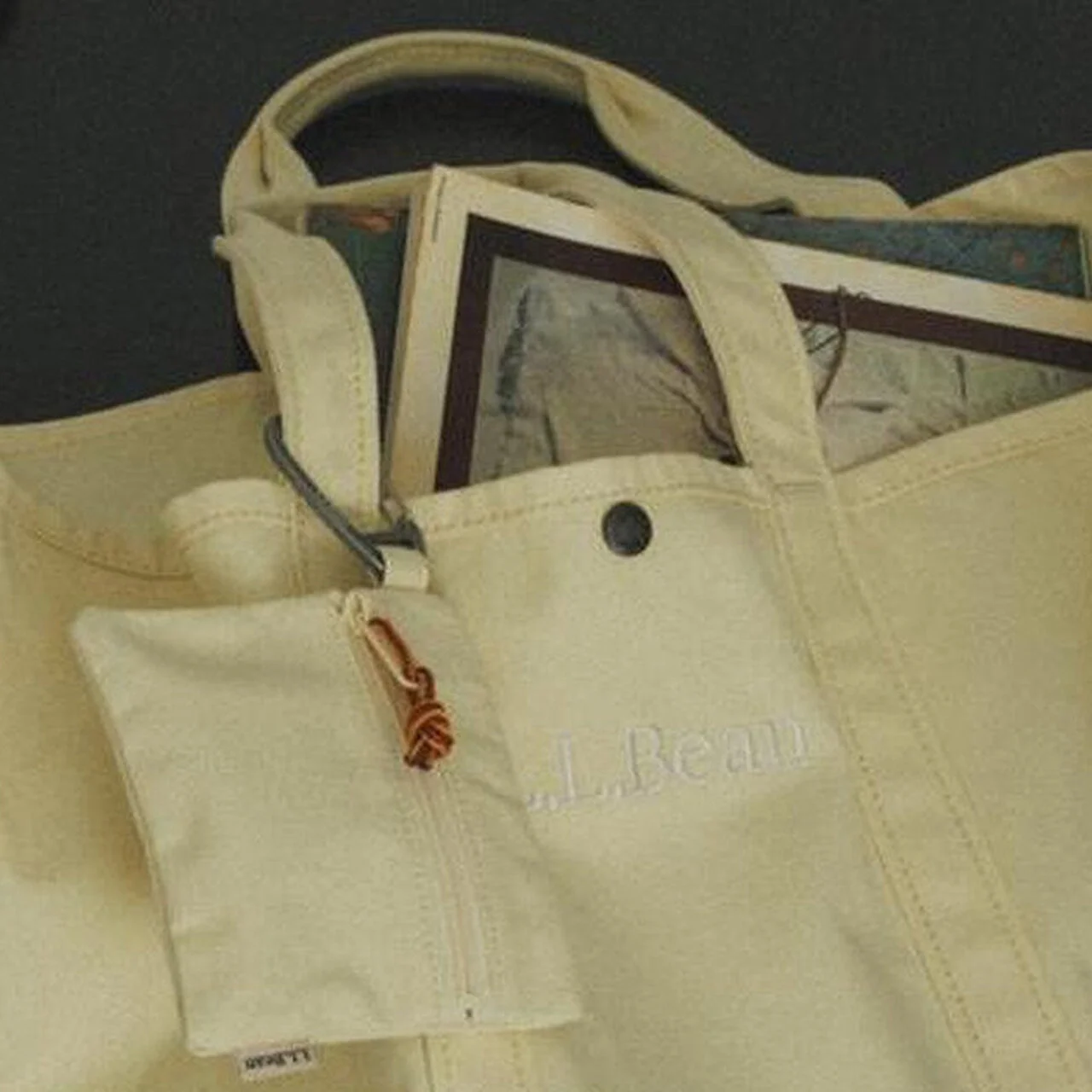2025年に発売され好評を博した「L.L.Bean」グローサリー・トートの別注モデルは、通常のグローサリー・トートよりもコンパクトで、レコードバッグとしても使用可能なサイズ感が特徴。内側に小さなポケットをあしらい、ハンドルを肩掛けでも手持ちでもバランス良く持てる長さに設定することで、コンパクトながらも使い勝手の良いバッグに仕上げている。