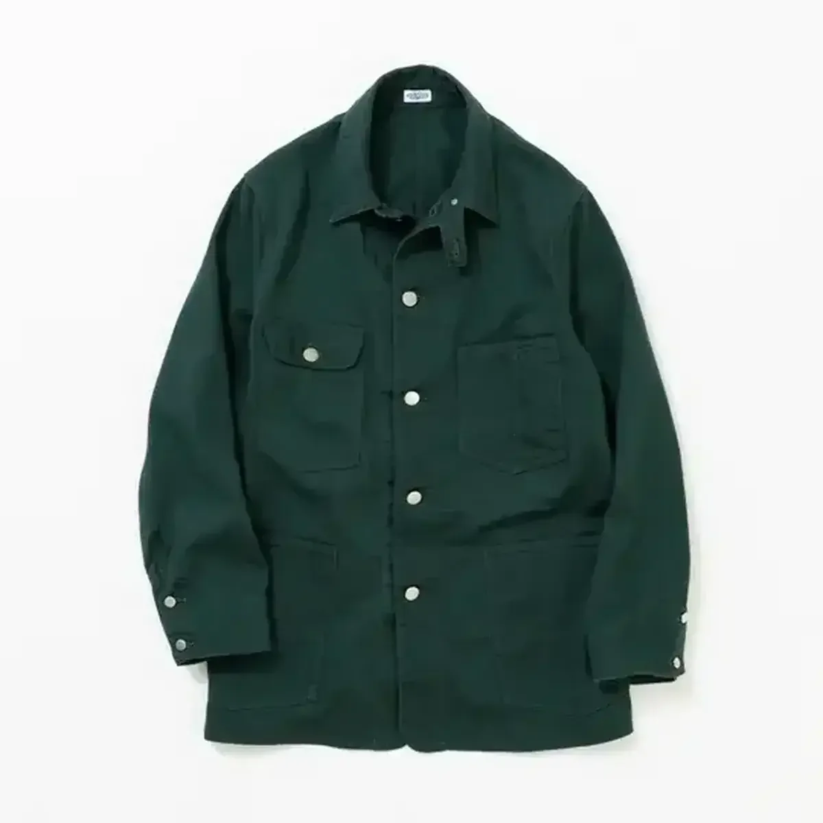 フレンチワークジャケットをもとに、ポケットにレザーを配してアレンジ。