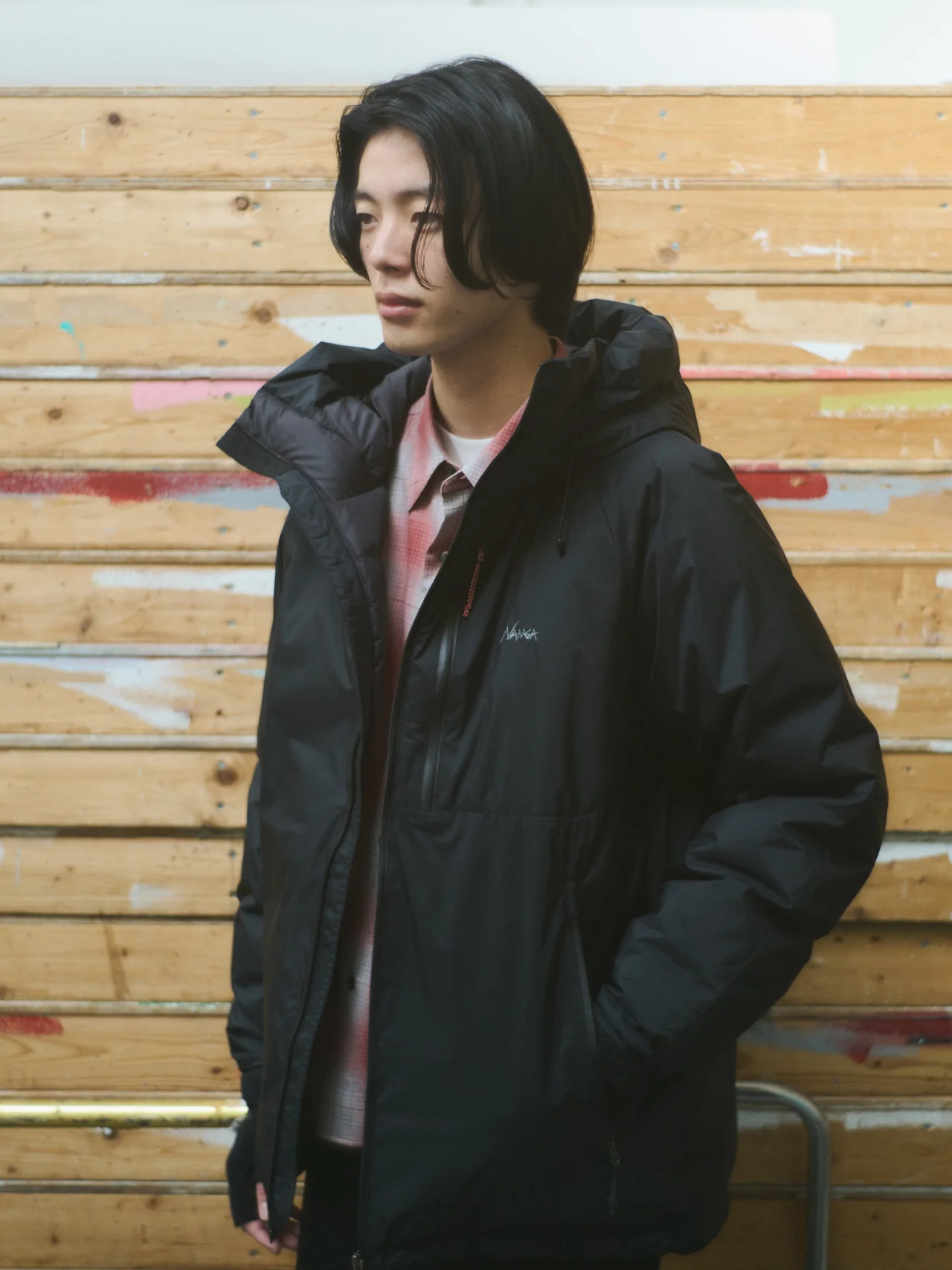 ナンガの超ロングセラーモデル、オーロラテックスダウンジャケット。760フィルパワーの高品質なスペイン産ホワイトダックダウンを使用。表地には、ナンガ独自開発の防水透湿素材『オーロラテックス®』を採用。冷たい雨や雪の日でも安心の防水性能と、通勤電車の中でも蒸れない透湿性を兼ね備えており、アウトドアだけでなく街での普段使いもしやすい。シンプルなデザインとTシャツから厚手のニットまでインナーであたたかさを調整しやすい程よいリラックスフィットも「ちょうどいい」。毎年リリースされるシーズナルカラーも捨てがたいが、汎用性の高いブラックはマストハブな鉄板中の鉄板。