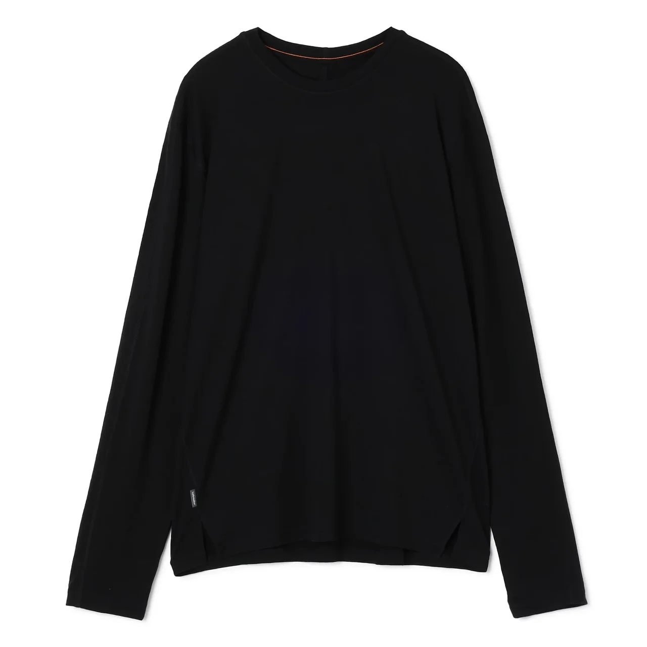 おしゃれな大人の間で愛用者が多いメリノウール素材のアンダーウェア。その中でもアイスブレーカーのそれは「アンダーウェアはこれ一択」というリピーターが絶えない知る人ぞ知る名品だ。17.5マイクロンという非常に細いメリノウール糸を100%使用した薄手の生地がもたらす、優しい肌触りとなめらかな風合いは一度袖を通すと病みつきに。サイドはフラットロック縫製で肌当たりも優しく、高密度な編地のため、透けにくいのもうれしい。ブラックのロンTは、すでにメリノウールアンダーウェアの魅力を知っている人はもちろん、はじめての一枚にもぴったりだ。