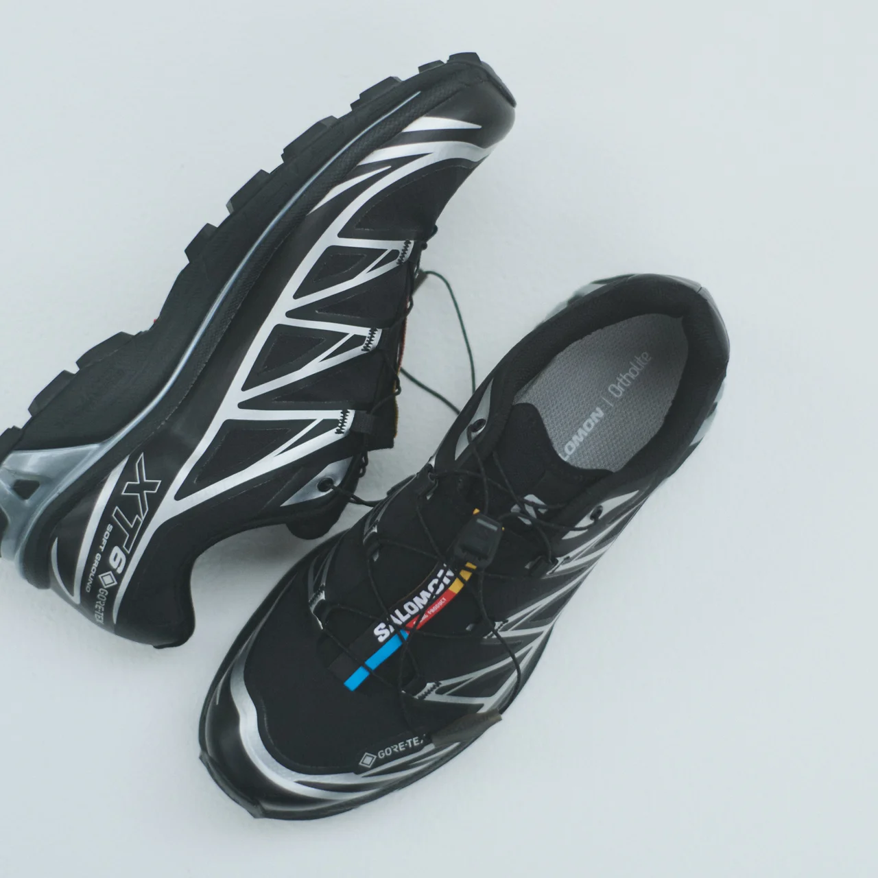 2013 年にオリジナルモデルが発売されて以来、今やサロモンのみならず全てのテック系黒スニーカーの定番的存在となった「XT-6」のブラックカラー。 もともとトレイルランニングシューズとして開発されているため、優れたクッション性、安定感、グリップ力は折り紙つき。そして人気の秘密は、やりすぎない絶妙なハイテク感のあるデザインと、合わせるボトムを選ばない程よいボリュームにある。カジュアルからモードまで幅広いスタイルにマッチする汎用性の高さは数ある黒スニーカーの中でもナンバーワン。持っておいて損はない一足だ。