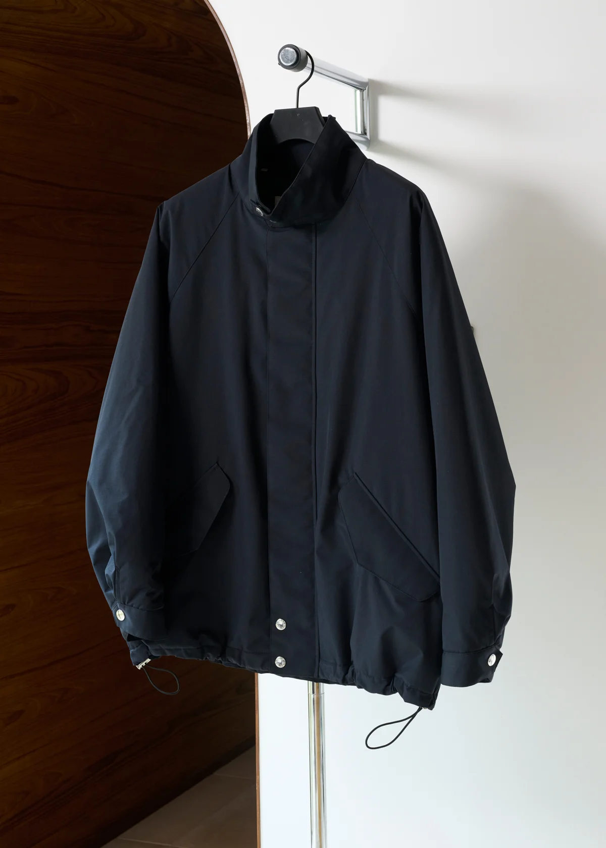 マッキントッシュといえば「ゴム引きコート」だが、近年は伝統的なものづくりと並行してモダンなアウターにも力を入れている。オリジナル素材の「レインテック」は、撥水性・防水性・透湿性を備えた多機能素材で、こちらのスタンドカラータイプのダウンブルゾンにも採用されている。着丈はほどよいミドル丈で、中にジャケットを着てもすっぽりと隠れる長さになっているため、ビジネス用のアウターとしても活躍できる。また、裾の内側にあるスピンドルを、フロントからサイドへと移動させたこともよりすっきりと見える要因。外見からはダウンとは想像しにくいが、これはダウンパックではなくシートを採用していることによる。工夫が凝らされた一着だ。