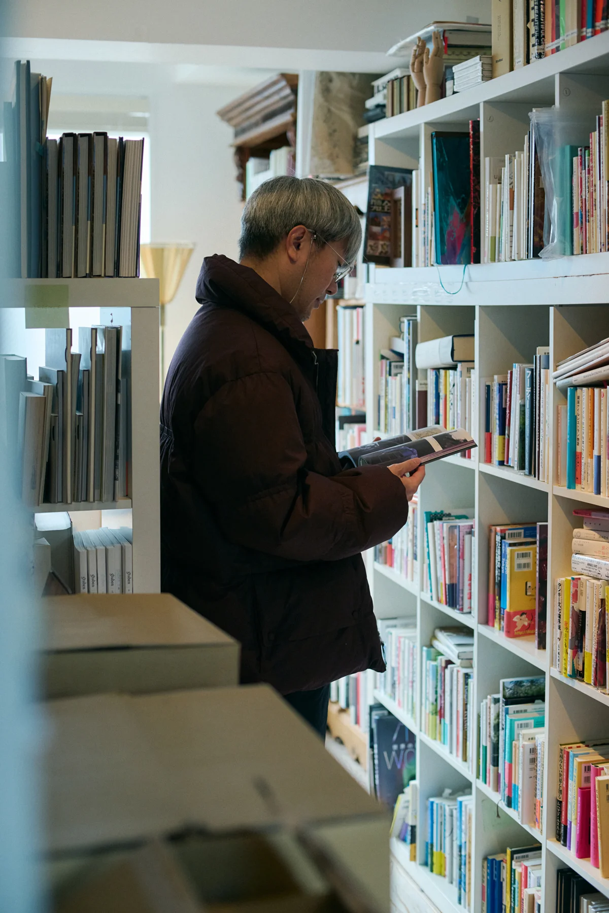 「紙の本は深く潜れるからいい。立ち止まって心の内側を覗き込める。熱くて、偏っていて、いびつで、それでも好きなものやキレイだと思うもの、あるいはその逆、何かそういうものを見つけられます。テクノロジーや社会システムが個々人より優位になりつつある世の中で、検索やAIでその場を取り繕えたとしても、根っこをどこに張っているのか。それこそが問われていく気がします。 僕の仕事は人が本を読むスイッチの入れ方を考えること。気が付けば読んでいたという状態をつくる。選書にとど まらず、その本が置かれる空間や家具…それもカーペットの毛足の長さに至るまで考える。町の人々にインタビューをしたりもします。子どもから70代くらいの方まで多種多様な声を聞きます。そうしながら差し出し方によってはまだ本を読む気持ちを抱ける人が確かにいることに勇気をもらっていますね。」
