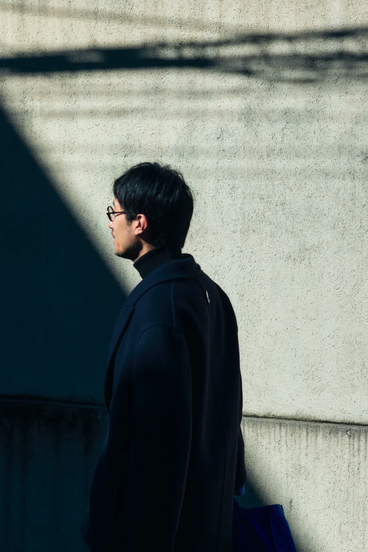 「コレクションは既に見ていたけれど、男性の日常着に大胆なフォルムや落ち着いたムードが落とし込まれているのが嬉しい。首周りの立ち上がりがキレイで、シルエットは立体的。ポケットとボタンの処理にほんの少しのクセがあって、何より軽くて暖かい。独特でありながら潔い。なんだか不思議で、言語化が難しい洋服です。」