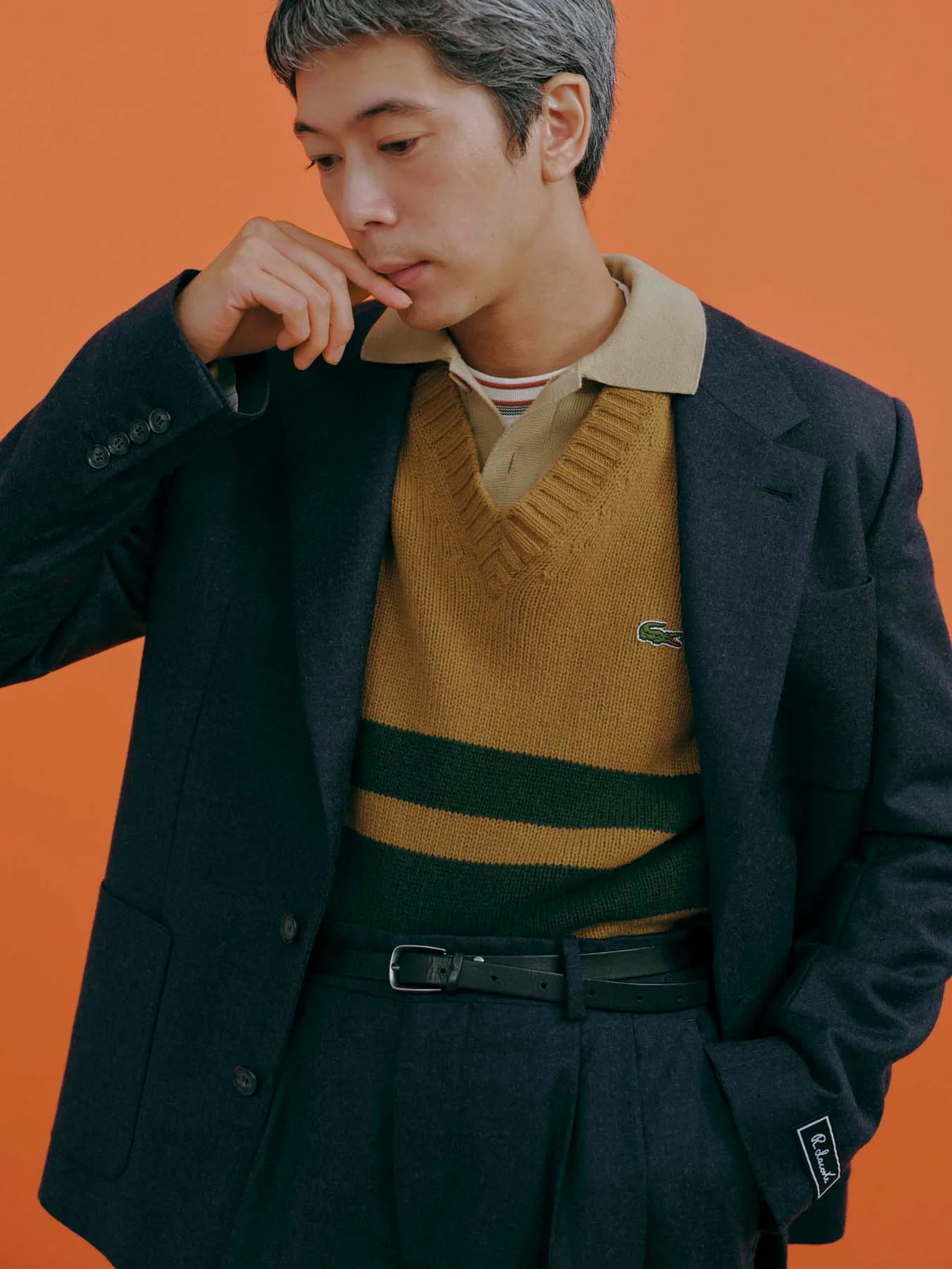 ワンランク上の素材とシンプルなデザイン、ベーシックなカラーパレットが特徴の「PARIS PACKコレクション」から登場したウールのセットアップ。タイムレスなフレンチエレガンスを体現する美シルエットのジャケットとスラックスは、袖口のルネ・ラコステのシグネチャーラベル「R.LACOSTE」や、同系色のワニ刺繍といったラコステらしい遊び心あふれるディテールにも注目。