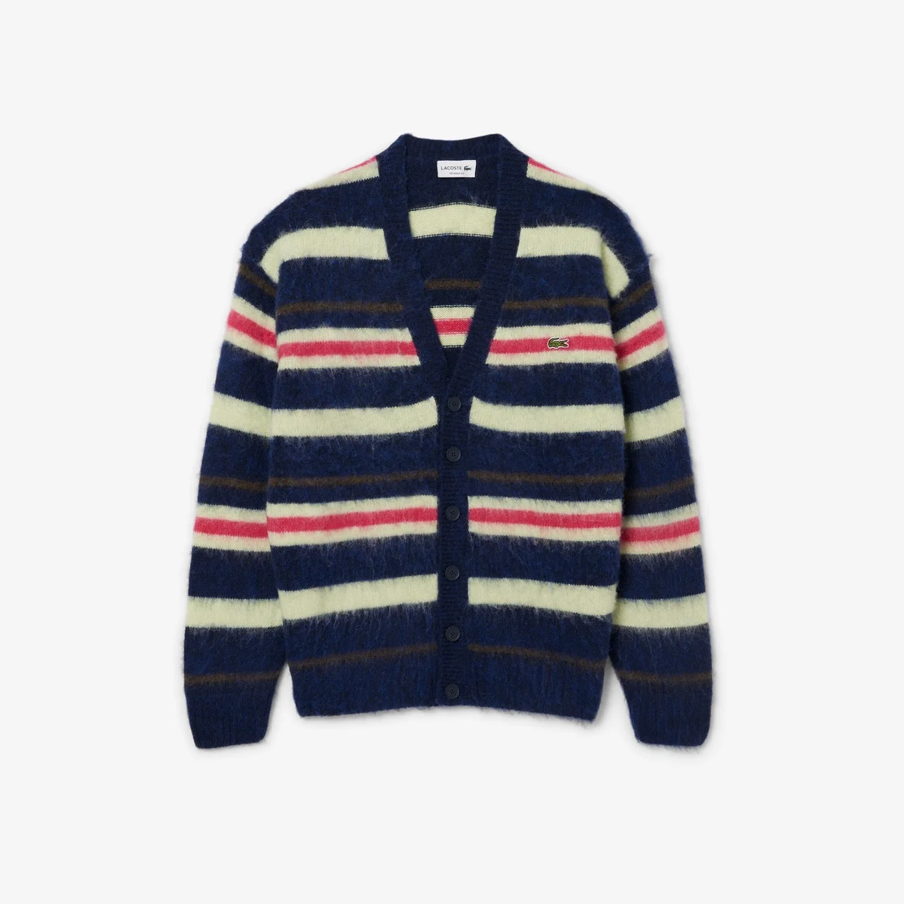 秋冬のラコステは毎シーズン多彩なニットコレクションが見どころ。今シーズンはキャッチーでありながら上品な配色のボーダーニットがおすすめだ。クルーネック、カーディガンともにナイロン×ウール×アルパカのブレンド素材。ナイロンの耐久性、ウールの保温性、アルパカの柔らかさと、異なる素材の良さを組み合わせた贅沢な仕上がりが魅力だ。税込み3万円以下で手に入るコスパの高さもうれしい。