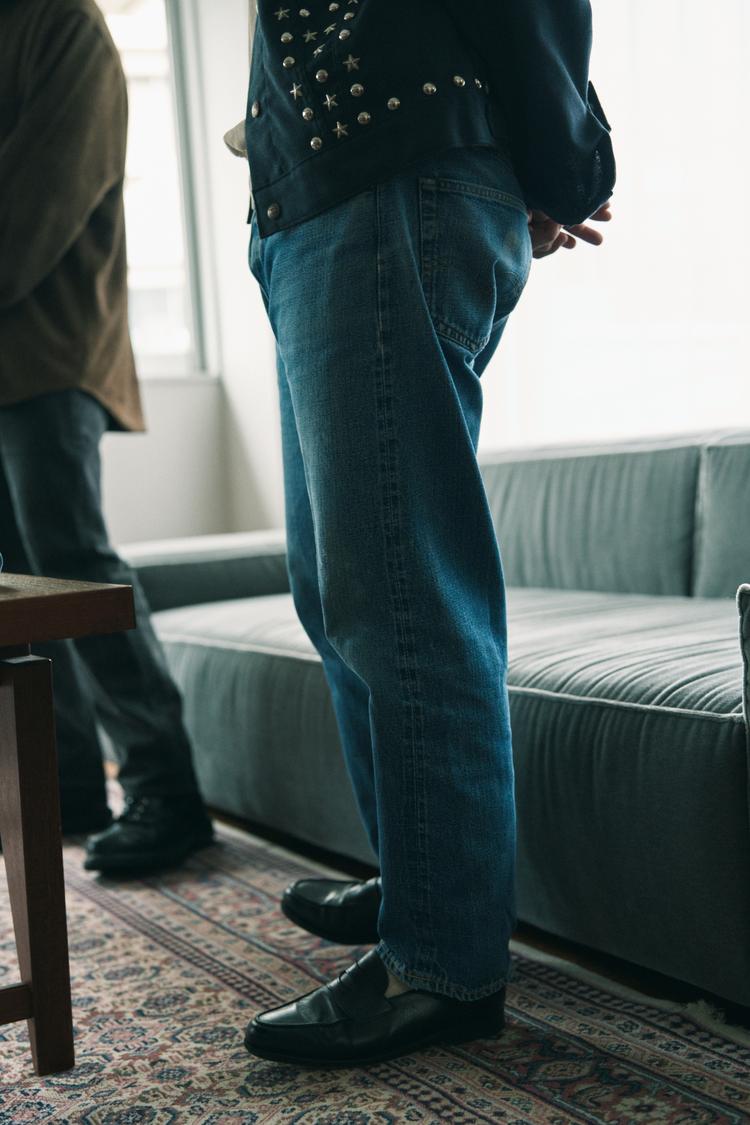 「501® Relaxedは、見た目だけだとオリジナルとの差がわかりにくいかもしれません。でも、穿いた瞬間に『あ、違うな』と感じるモデルです。股上と腿にほんの少し余裕があることで、動きやすさが明らかに変わる。オリジナルは、ある意味で完成されすぎていて、穿き手に緊張感を要求するところがある。でもRelaxedは、その緊張をうまく解いてくれる。リラックスしているけど、だらしなくはならない。その境界線をかなりうまく突いていると思います。裾にかけてのラインもポイントで、全体としてはストレートだけど、わずかにテーパードしている。だから、靴を選ばないし、全身のバランスが取りやすい。今のトップスのサイズ感とも相性がいいので、『何を合わせればいいかわからない』という悩みが起きにくい501®だと思います」