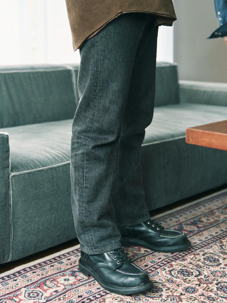 ヴィンテージのサイズアップした穿きこなしや、日本のストリートカルチャーから着想を得て生まれたモデル。ヒップから太もも、裾にかけてしっかりとボリュームを持たせ、腰位置を落として穿くローライズ仕様が前提となる。大胆なシルエットながら、フロントやバックポケットなどのディテールはオリジナル譲り。合わせ方次第でストリートにもクラシックにも振れる、着こなしの幅を広げてくれる存在だ。