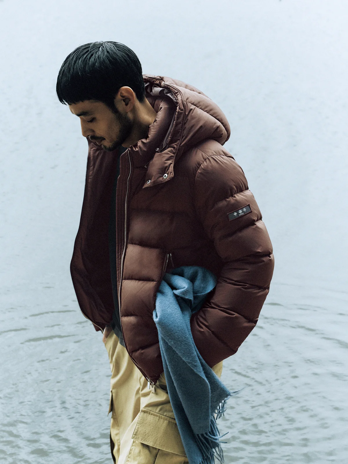 上質な素材と都会的なデザインで人気を集めるタトラスのダウンジャケット。ポーランド産のホワイトグースダウンを贅沢に使用した保温性の高さも魅力だ。今季の注目は、新色のブラウンとピンク。大人のための一着で冬を楽しもう。