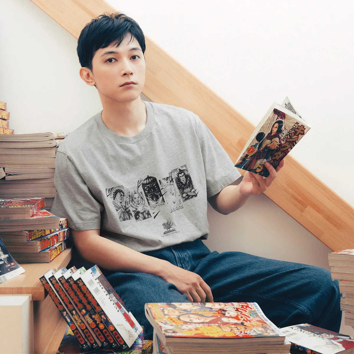 今年で創業100周年を迎える集英社がユニクロとコラボレーション。国境を超えて愛されるマンガとファッションの一大プロジェクトが始動した! 3月16日から順に100柄のUTが世界中でリリースされる、まずは第一弾。歴代作品の名シーンをデザインした特別なTシャツを、俳優・吉沢亮が着る。