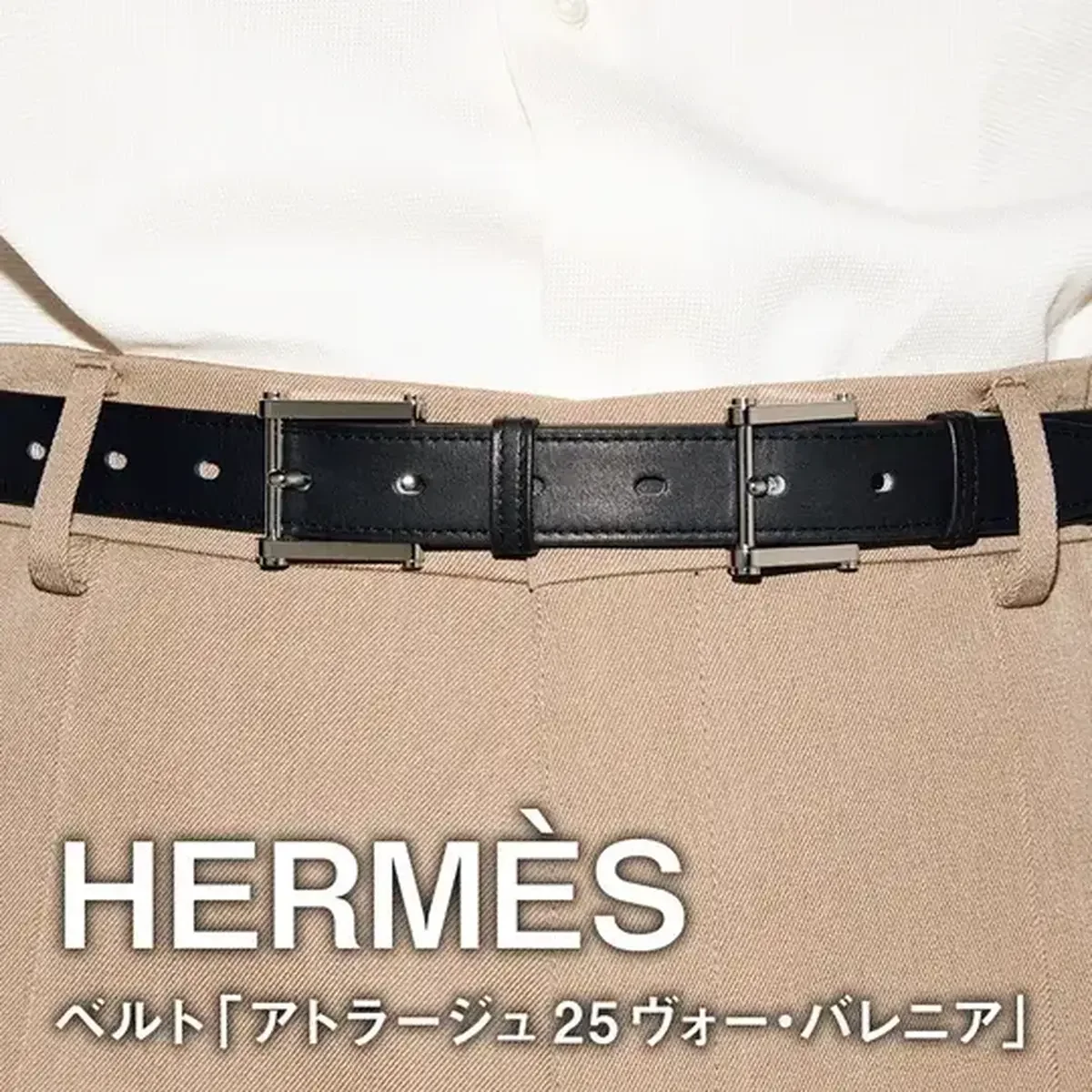 定番の黒革×シルバーはバックルの付け根が見えないスクエア型&細幅が今っぽい。2カ所でピンを固定し、ズレない設計。