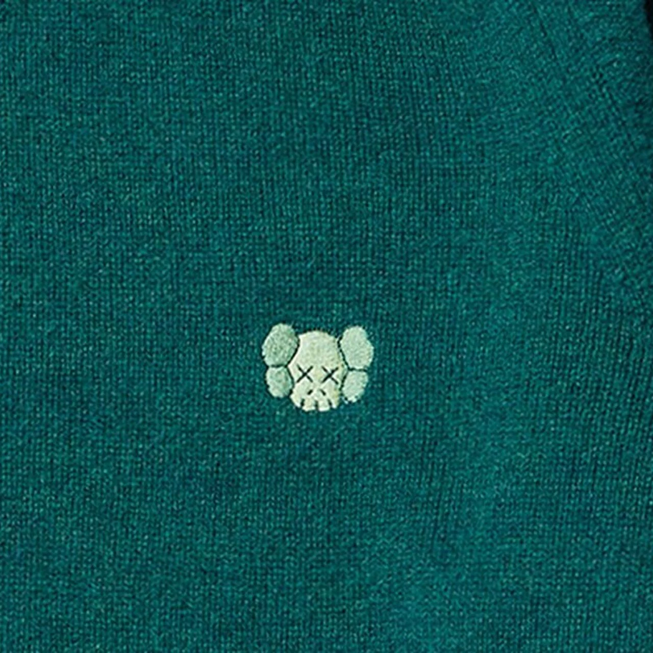 デザインも控えめ。アイコニックな「XX」モチーフが左胸に、「KAWS」のオリジナルキャラである「COMPANION(コンパニオン)が左袖先にワンポイントで施されている。ついでにもう1型、スタンダードアイテムである「ユニクロ」メインラインの「カシミヤクルーネックセーター」と比較すると、15色展開で9,990円(税込)であった。