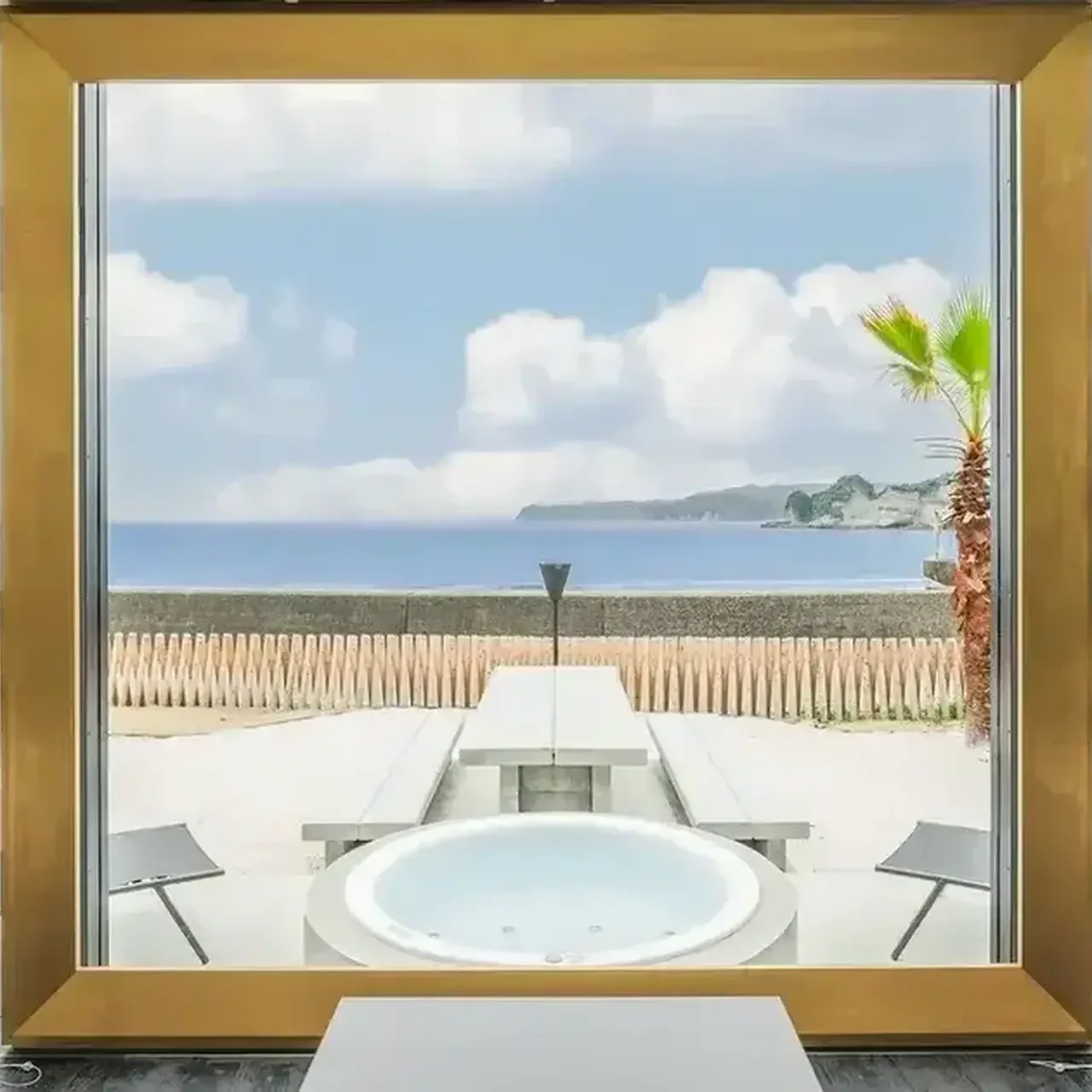 初日の夜は2階にある炉端焼きレストラン「シラカチ 炉端」へ。オーシャンビューのテントサウナで心もカラダもリフレッシュするとやはり腹が減るものだ。まずはオリオンビールで喉の渇きを潤す。沖縄食材をふんだんに使ったコース料理は沖縄の地酒にも泡盛にも合う。活気のあるオープンキッチンは見ていて楽しいし、窓からは美しい海が見えて、さらにお酒も進む。食べ終わるころにはすっかり暗くなっていた。ほど良い酔いで部屋に戻りベッドに寝転ぶ。波音を聞きながら本でも読もうかと思っていたが、気づけば眠りに落ちていた…。