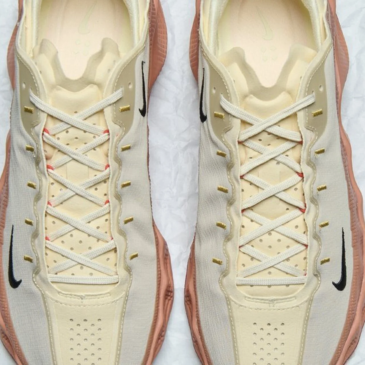 「ナイキ エイバ ローバーは7月25日に発売されたばかりの新型スニーカーです。2000年前後のナイキのモデルにあった近未来感のあるアッパーと厚底のリアクトX フォームクッショニングを融合したようなデザインで、久々にイノベーティブなナイキを感じました。2018年にナイキのリアクト エレメントが出たときも、新しいモノにチャレンジするナイキらしさが見えて、僕はすごく好きでした。エイバ ローバーはそれに近い感覚があります」。