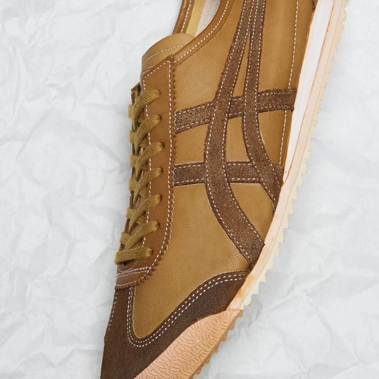 「オニツカタイガーの中でも鳥取の山陰工場でつくられているNIPPON MADEシリーズのメキシコ 66です。ロンドンに行ったときオニツカタイガーを履いている人をたくさん見ました。彼らはストリートのカルチャーではなく、ラグジュアリーなヨーロッパの空気感で選んでいるんですよね。改めてメキシコ 66を手に取ると、今の薄底ブームやラグジュアリーブランドの薄底シューズとも重なって、クラシックだけれども新鮮に見えます」。