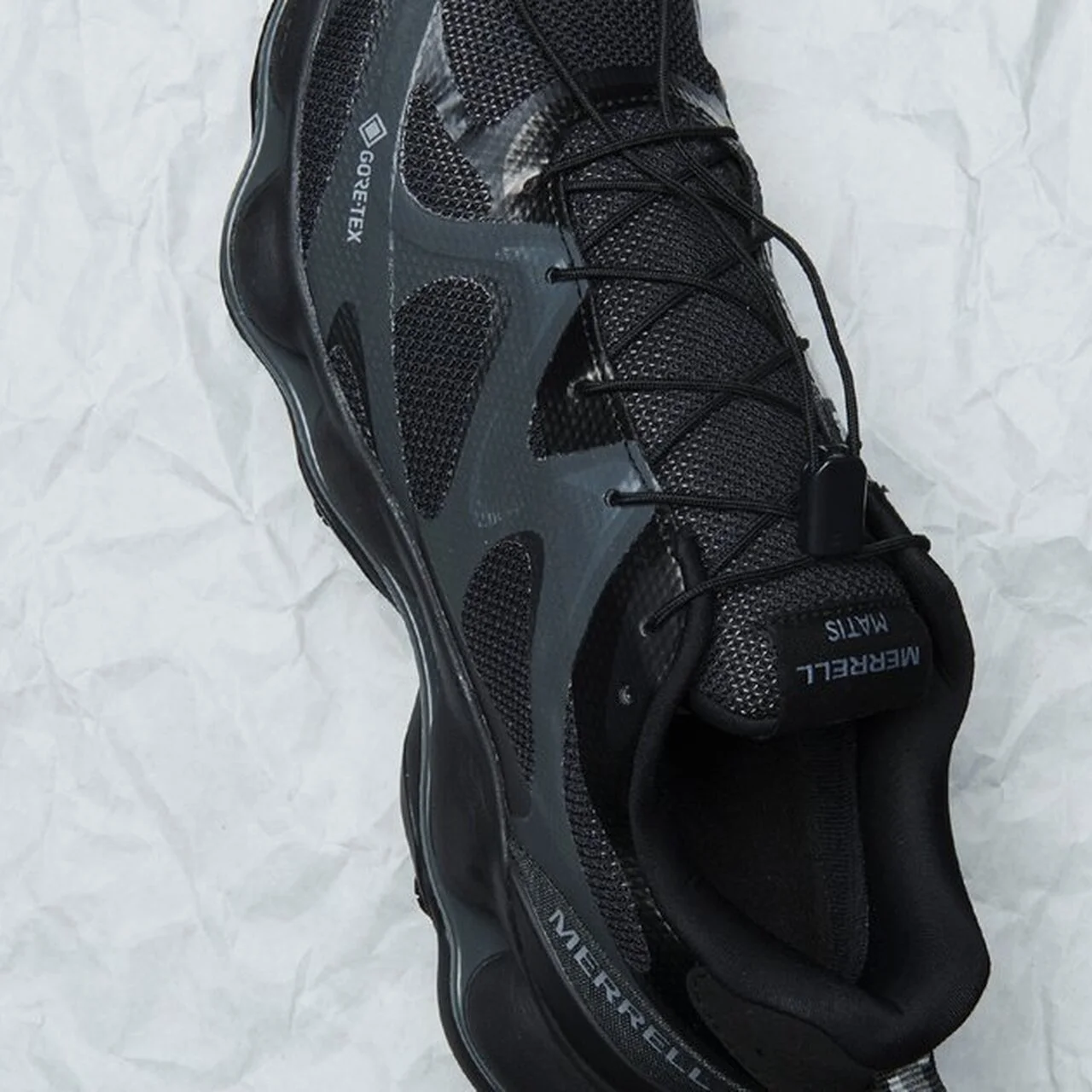 「ゴープコアのジャングル モックもありながら、こういうフューチャリスティックなモデルも手がけるメレルは、本当に器用なブランドになっているなと思います。最新のスピード アーク マティス ゴアテックスには、メレルのハイテクシューズへの意欲が見えます。メレルといえば素材を組み合わせる複雑なレイヤーが特徴でしたが、これは完全に圧着で、見事なハイテクシューズになっています」。