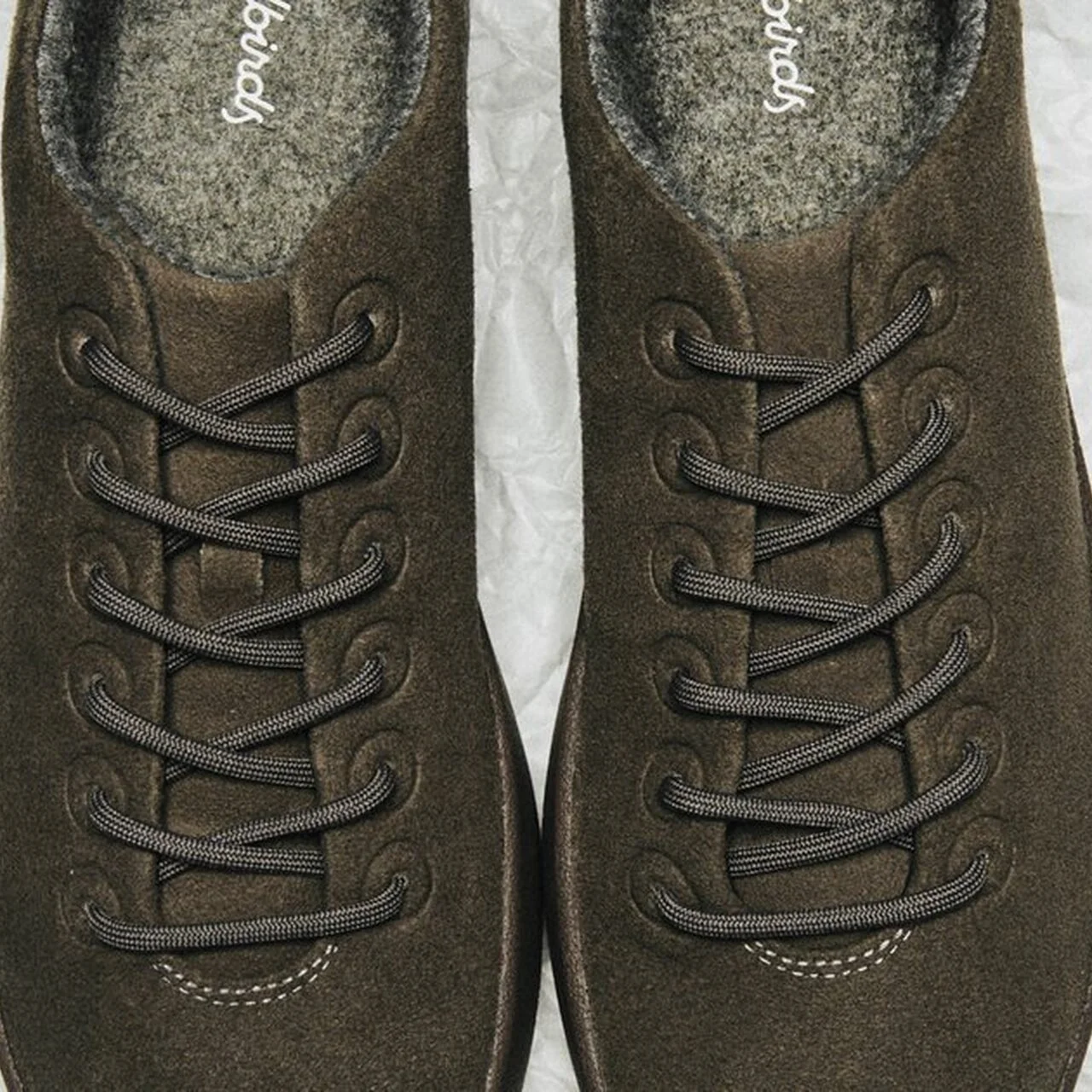 “イノベラ”はバイオデザイン技術から生まれた合成皮革で、植物由来のたんぱく質、バイオポリマー、再生ゴムを原料としてつくられています。動物の皮膚に含まれるコラーゲンにとてもよく似た性質を持つため本革のような質感が生まれ、従来のヴィーガンレザーを一歩進めた素材として注目されています。高級感だけでなく、履き続けたときのシワ感や経年変化もリアルレザーのような風合いになりそうで、レザーと同じ土俵で勝負できるサステナブル素材を選ぶ姿勢が、いかにもオールバーズらしいと感じました。
