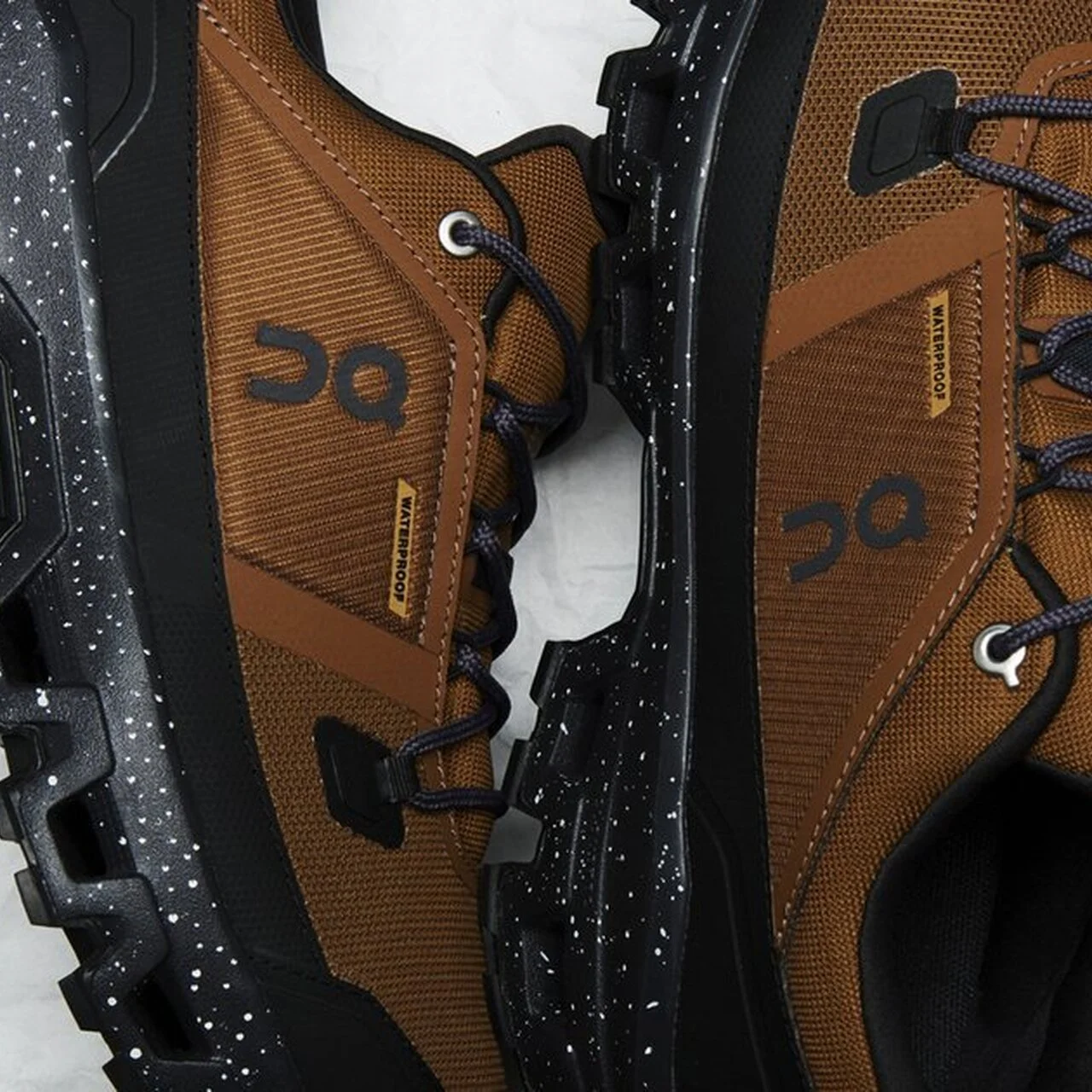 今回のモデルは、アメリカ最大級のアウトドアブランド、REI(アール・イー・アイ)とのコラボということもあり、アウトドアショップのシューズコーナーに並んでいても違和感のない佇まい。黒×茶色の配色や、リサイクル素材を思わせるソールの質感など、王道アウトドアのディテールが逆に新鮮に映ります。