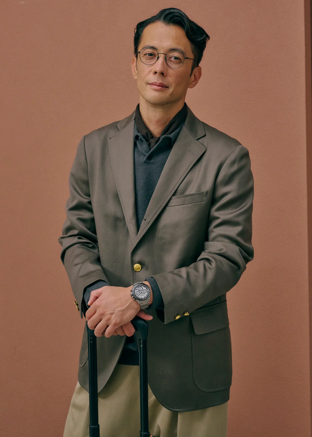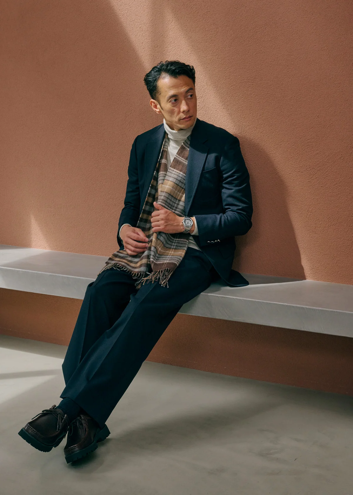 時計[CC4076-65A]¥363,000/アテッサ(シチズンお客様時計相談室) ジャケット¥79,200/J.プレス オリジナルス(J.プレス & サンズ 青山) ニットポロ¥38,500/キャッシュアンドバルバ(エグジステンス) パンツ¥31,900/ニート(にしのや) シューズ¥47,300/リプロダクション オブ ファウンド(アイ ファウンド) メガネ¥49,500/エーシーカーニー(ソスト) スカーフ¥19,800/ヴィンセンツォ・ミオッツァ(真下商事) その他/スタイリスト私物