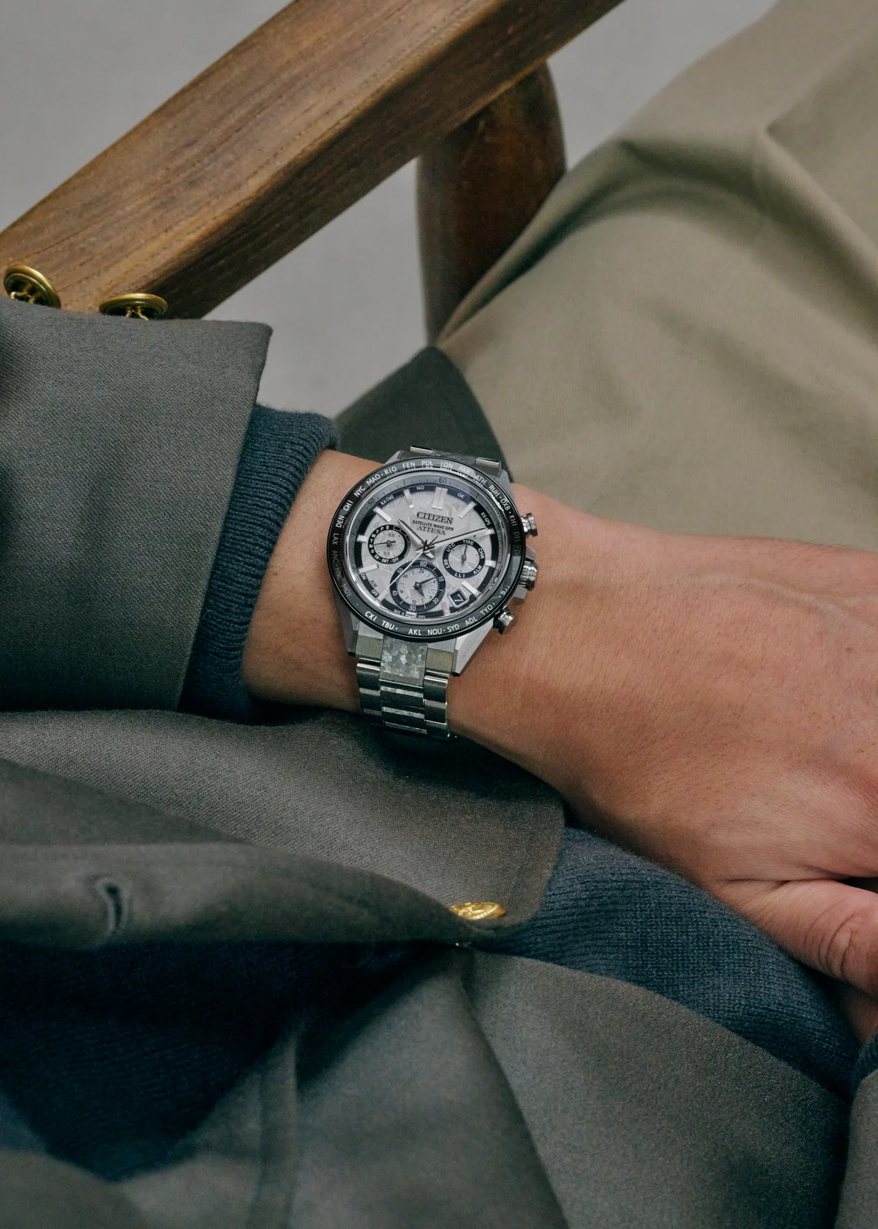 ケース径40.6mm、スーパーチタニウム™、10気圧防水。世界限定1,400本。¥187,000/アテッサ(シチズンお客様時計相談室)