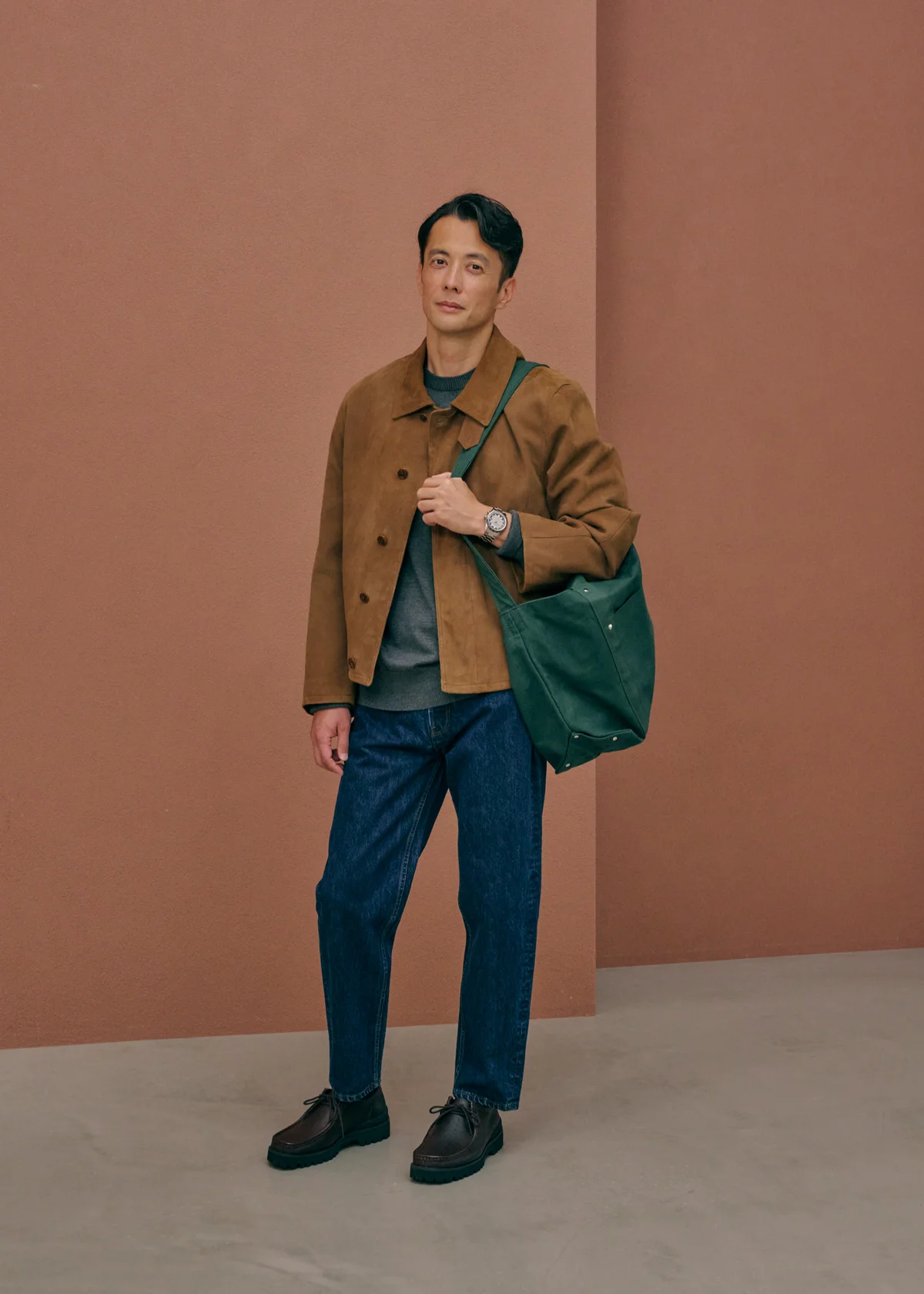 高級感も申し分なく、仕事でのセットアップスタイルもレザージャケットをはおったプライベートなスタイルにもマッチ。いつものスエードでなくスコッチグレインレザーを用いたクラークスのワラビーのように、カジュアルもドレスもカバーするような革靴と相性がいいのもうなずける。