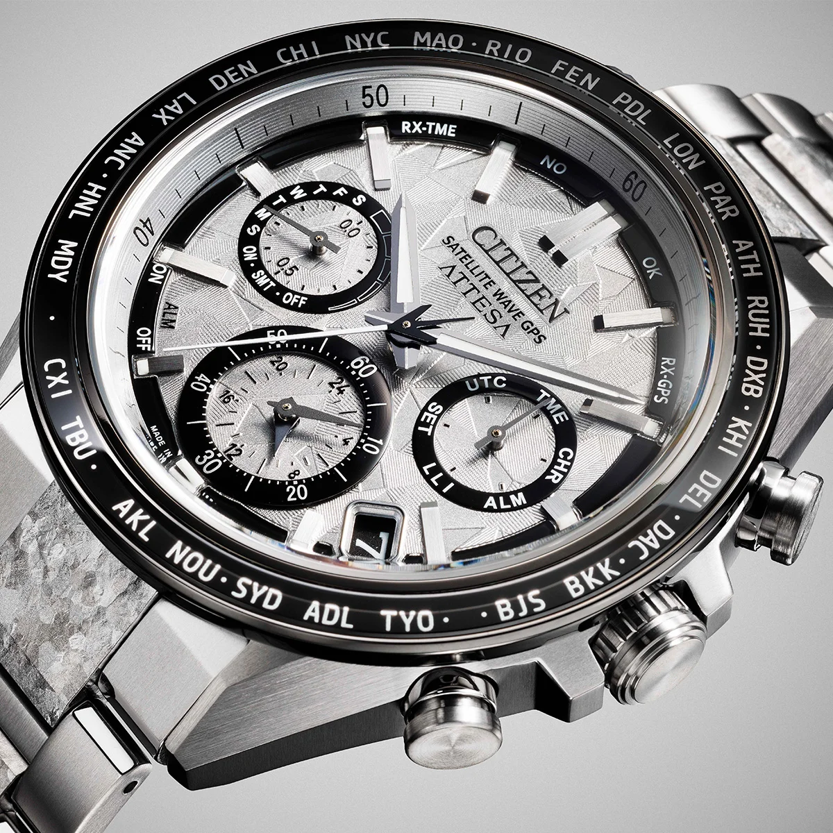 ケース径44.6mm、スーパーチタニウム™、10気圧防水。世界限定2,200本。¥363,000/アテッサ(シチズンお客様時計相談室)