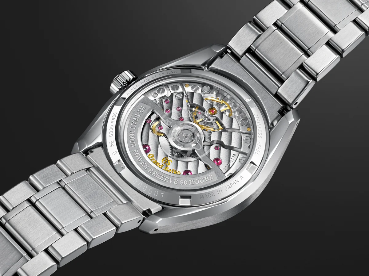 搭載するムーブメントは手巻きメカニカルハイビートのCal.9SA4。今では珍しくなった手巻き式だが、グランドセイコーでは動力ゼンマイを巻き上げる際の巻き感にもこだわっている。カチカチと指先に伝わる感触で、時計と対話する。そんな静かなひと時を楽しみたい。