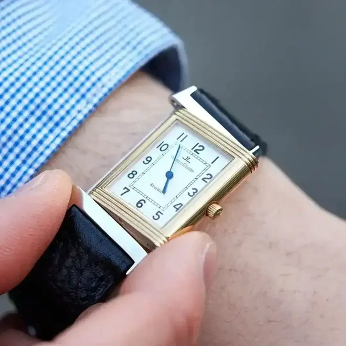 ブランドの技術力が詰まった「レベルソ・トリビュート・デュオ・スモールセコンド」に、久々のブラックダイヤルモデルが登場。表側は初代を彷彿とさせる端正なデザインを採用。裏面はシルバーダイヤルで、ナイト&デイ表示を備えた第2時間帯表示が収まる。裏面の時針はケース上のスライダーを使って操作する仕組みで、ケースを反転させるだけで簡単に異なる時刻に切り替えができる。ファッションに合わせて表面と裏面を使い分けることが可能だ。